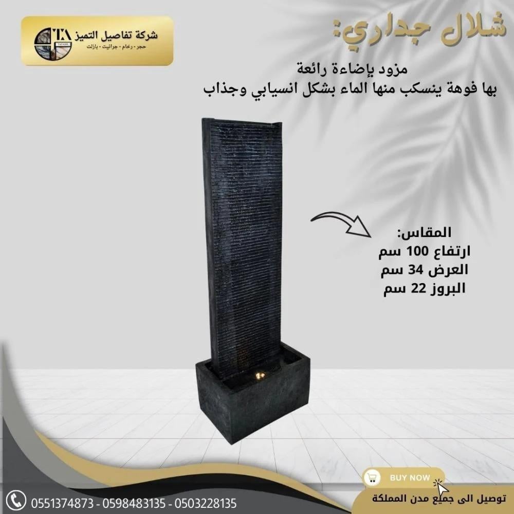 الشلال يساعدك على الشعور بصفاء الذهن و الإسترخاء مع صوت المياه الجذاب ، كما أنه فخم ويضيف لمسة جمالية للمكان مزود بإضاءة رائعة بها فوهة ينسكب منها الماء بشكل انسيابي وجذاب يعيشك جو الطبيعة الساحرة كما ان التصميم عصري يناسب جميع الازواق